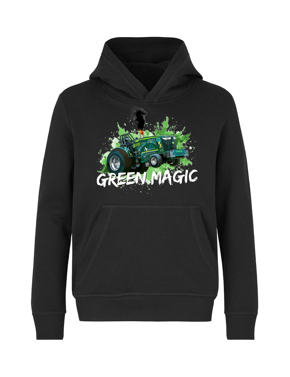 Denne hoodie er skabt til dig, der lever og ånder for traktortræk og Green Magic-universet. Det markante motiv på fronten kombinerer rå power og detaljerig grafik, der tydeligt signalerer passion for maskiner, teknik og motorsport. Perfekt både på banen, i værkstedet og til hverdagsbrug, når komfort og udtryk skal gå hånd i hånd.