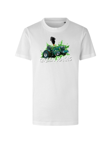 Denne Green Magic T-shirt er skabt til dig, der har en forkærlighed for store maskiner, rå kræfter og traktortræk-kulturen. Det detaljerede motiv på fronten kombinerer den ikoniske grønne stil med et udtryk, der tydeligt signalerer power og performance.