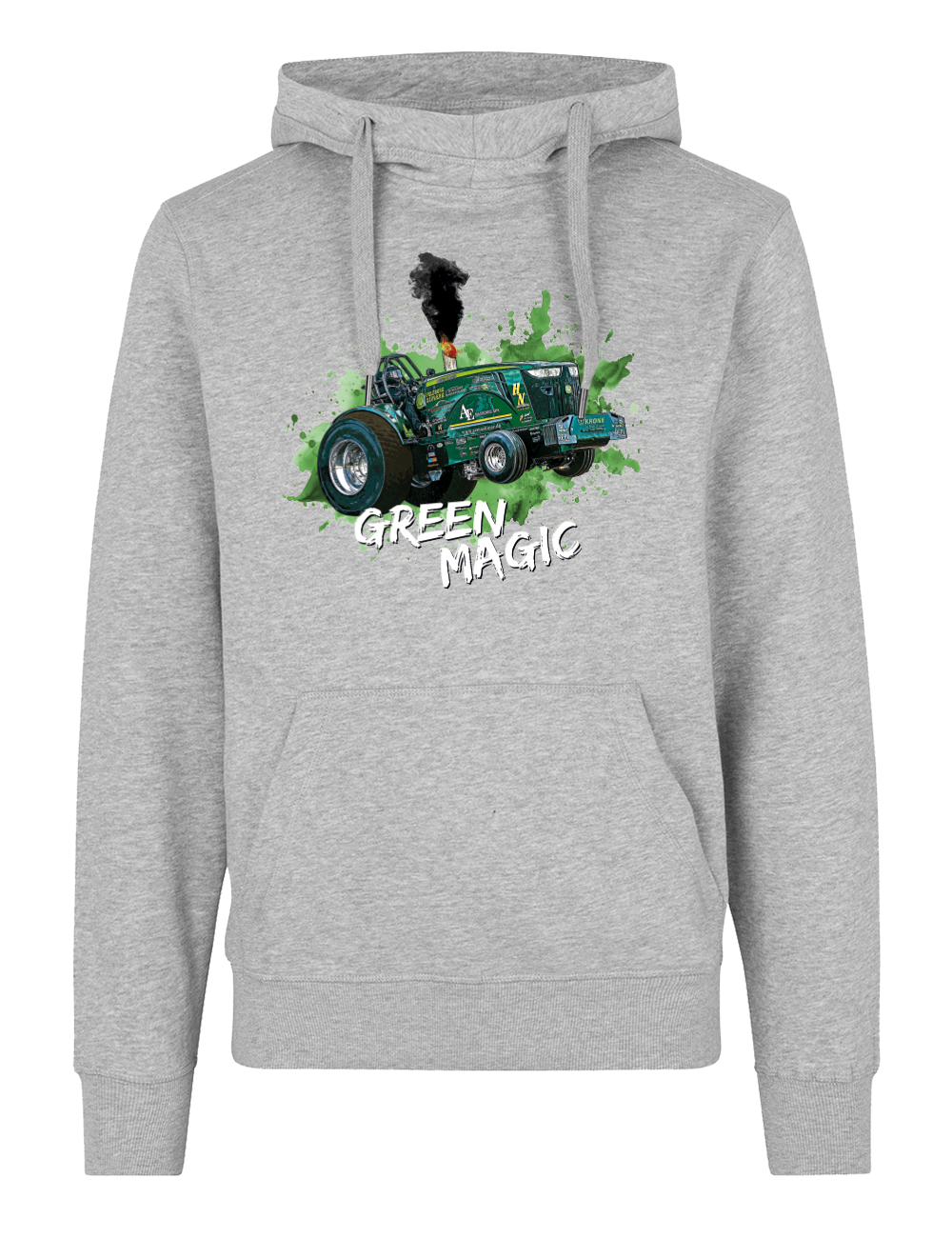 Denne hoodie er skabt til dig, der lever og ånder for traktortræk og Green Magic-universet. Det markante motiv på fronten kombinerer rå power og detaljerig grafik, der tydeligt signalerer passion for maskiner, teknik og motorsport. Perfekt både på banen, i værkstedet og til hverdagsbrug, når komfort og udtryk skal gå hånd i hånd.