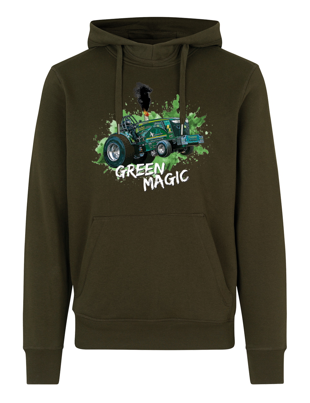Denne hoodie er skabt til dig, der lever og ånder for traktortræk og Green Magic-universet. Det markante motiv på fronten kombinerer rå power og detaljerig grafik, der tydeligt signalerer passion for maskiner, teknik og motorsport. Perfekt både på banen, i værkstedet og til hverdagsbrug, når komfort og udtryk skal gå hånd i hånd.