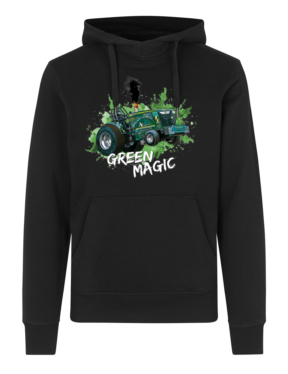 Denne hoodie er skabt til dig, der lever og ånder for traktortræk og Green Magic-universet. Det markante motiv på fronten kombinerer rå power og detaljerig grafik, der tydeligt signalerer passion for maskiner, teknik og motorsport. Perfekt både på banen, i værkstedet og til hverdagsbrug, når komfort og udtryk skal gå hånd i hånd.