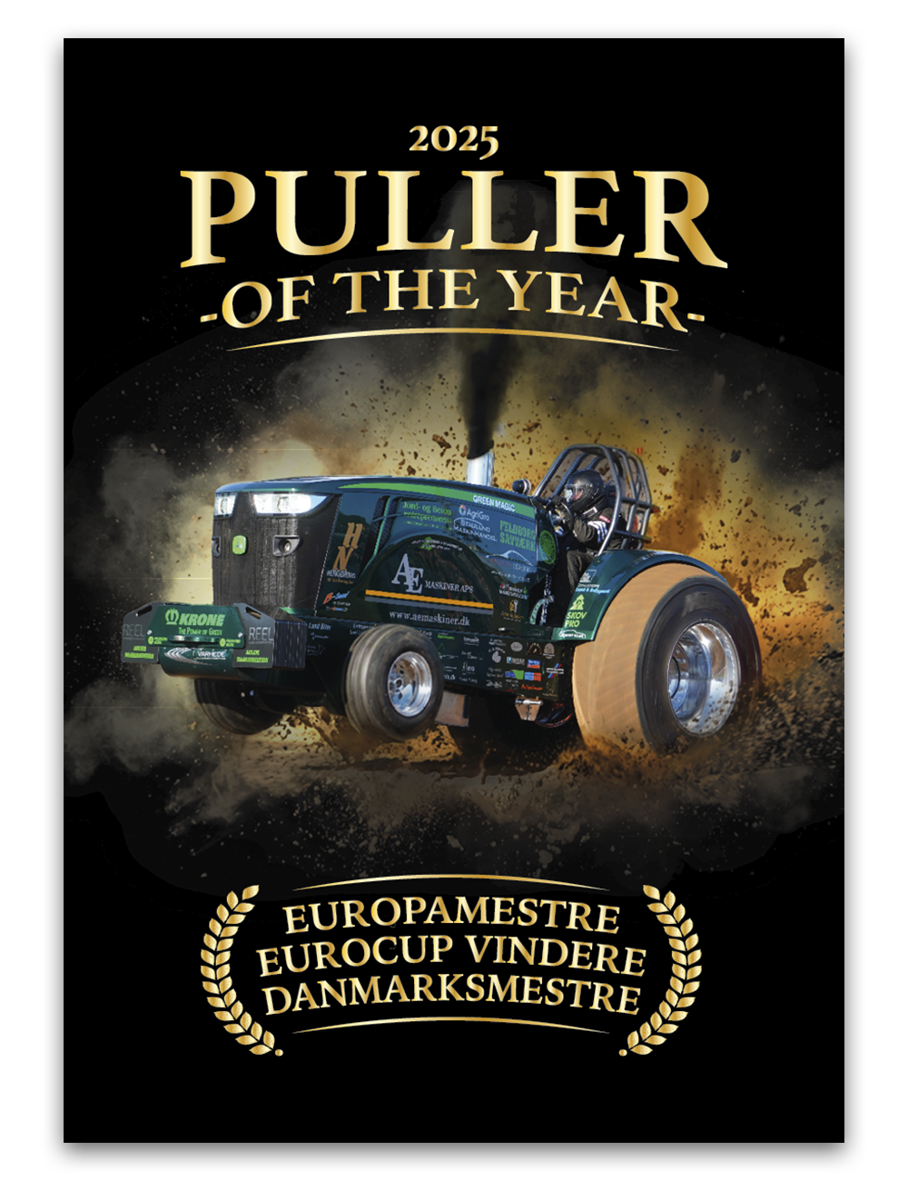 Denne plakat er til dig, der vil hylde Green Magics imponerende 2025-sæson. Med titlen “Puller of the Year 2025” og et kraftfuldt motiv af pulleren i aktion er plakaten et markant statement for enhver fan af traktortræk.