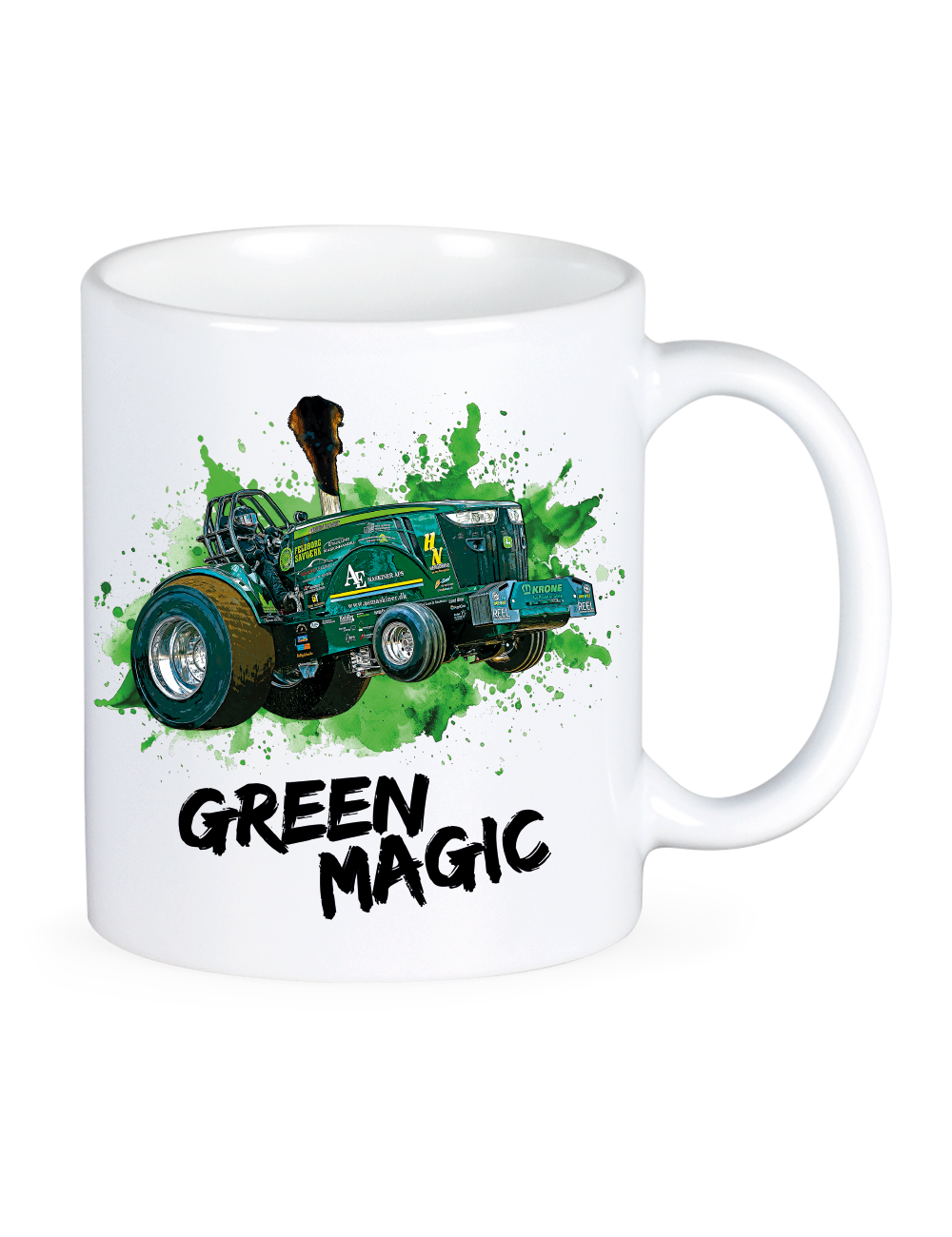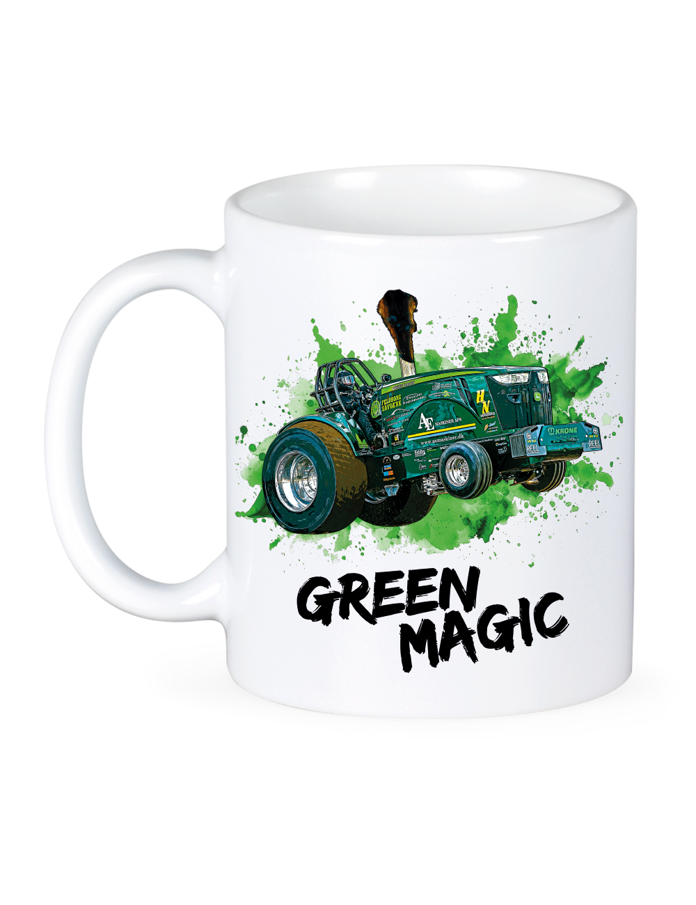 Start dagen med Green Magic på bordet. Dette krus prydes af det markante Green Magic-motiv med traktoren i fuldt træk og er perfekt til kaffe, te eller kakao – både hjemme, på værkstedet eller på kontoret. Et solidt krus, der passer lige så godt til hverdagsbrug som til samlingen for ægte traktortræk-fans.