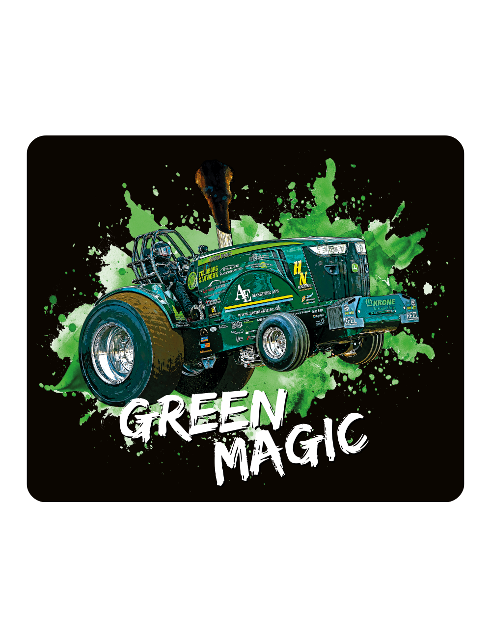 Giv dit setup et markant udtryk med denne Green Magic musemåtte. Det dynamiske motiv med den ikoniske traktor og grønne splasheffekter bringer traktortræk-energien direkte ind på skrivebordet – uanset om du gamer, arbejder eller begge dele.
